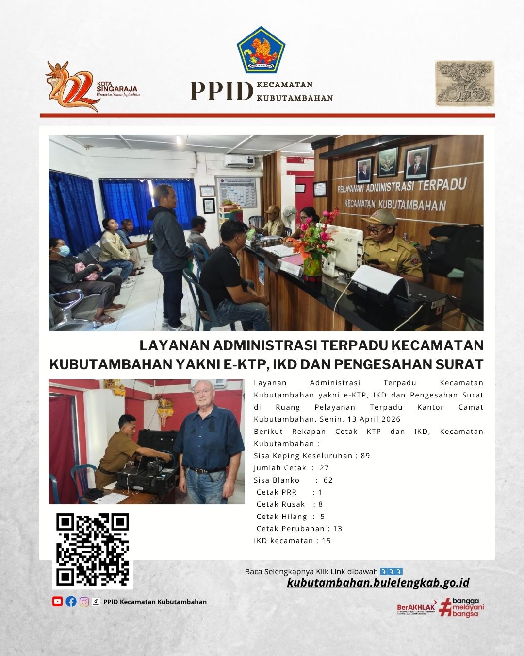 Layanan Administrasi Terpadu Kecamatan Kubutambahan yakni e-KTP, IKD dan Pengesahan Surat Edisi 13 April 2026