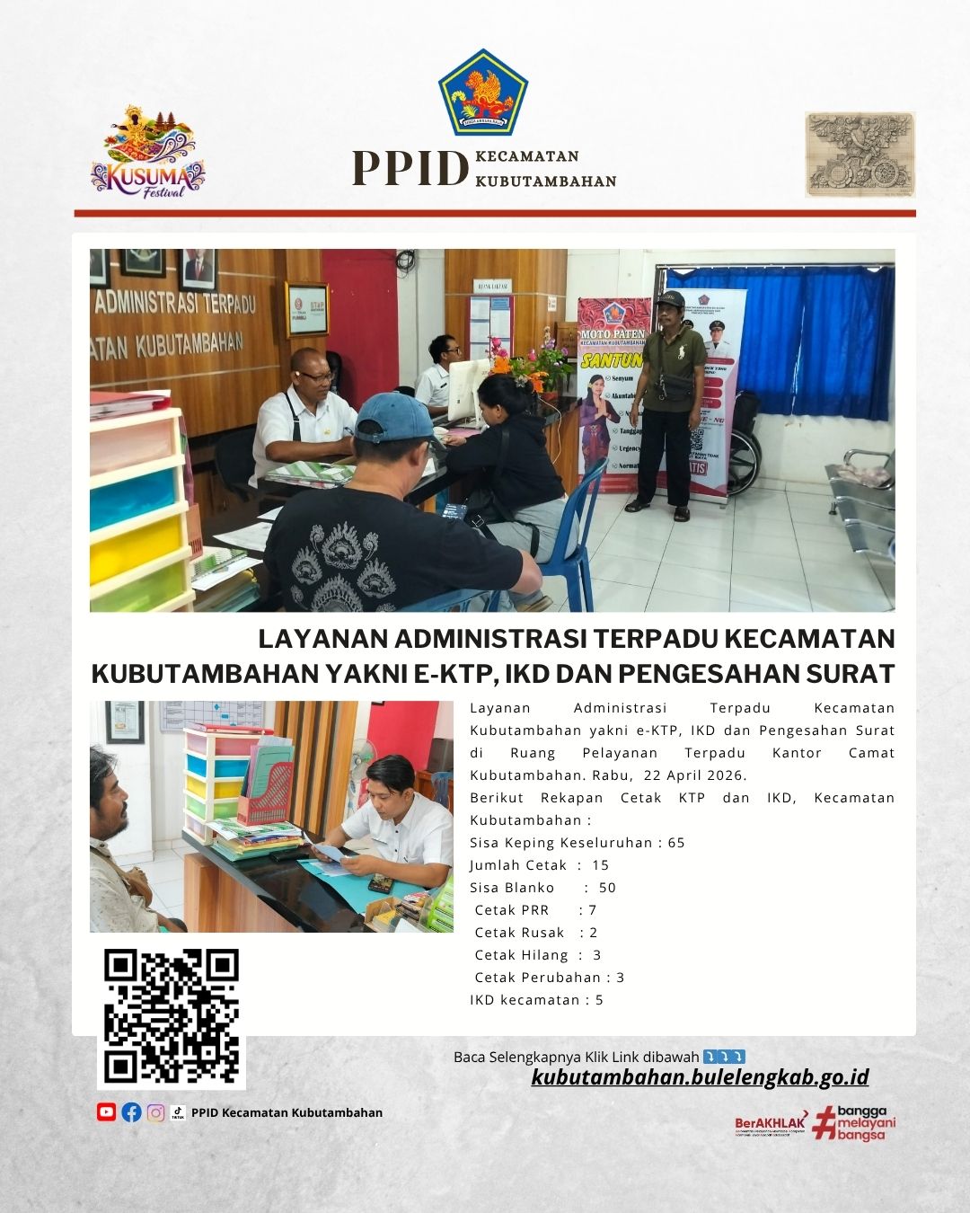 Layanan Administrasi Terpadu Kecamatan Kubutambahan yakni e-KTP, IKD dan Pengesahan Surat Edisi 22 April 2026
