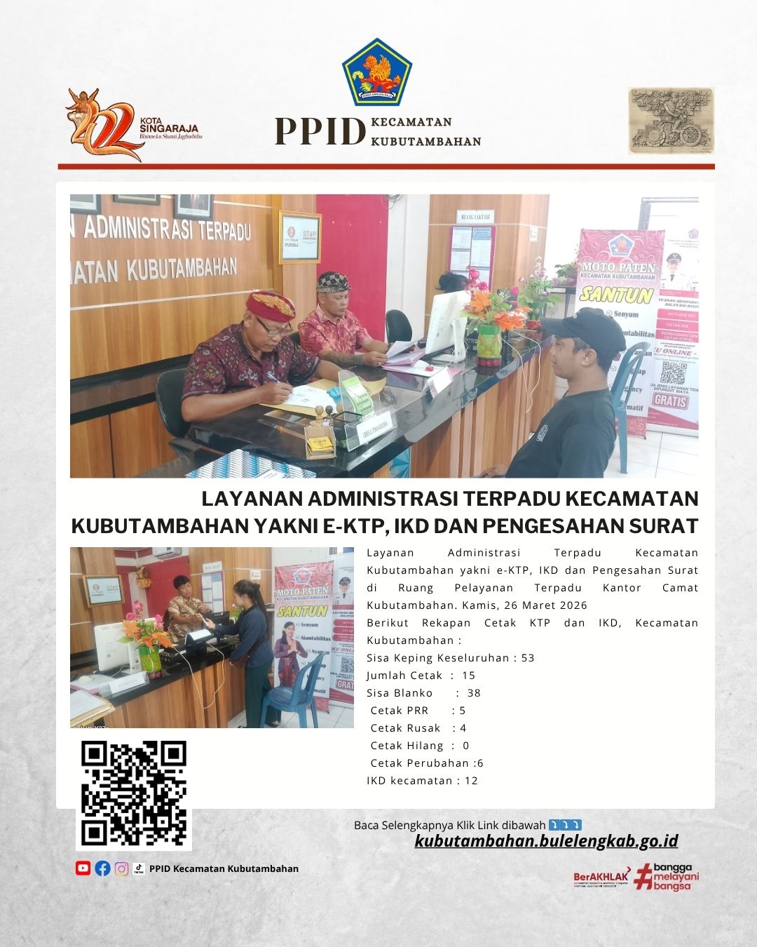Layanan Administrasi Terpadu Kecamatan Kubutambahan yakni e-KTP, IKD dan Pengesahan Surat Edisi 26 Maret 2026