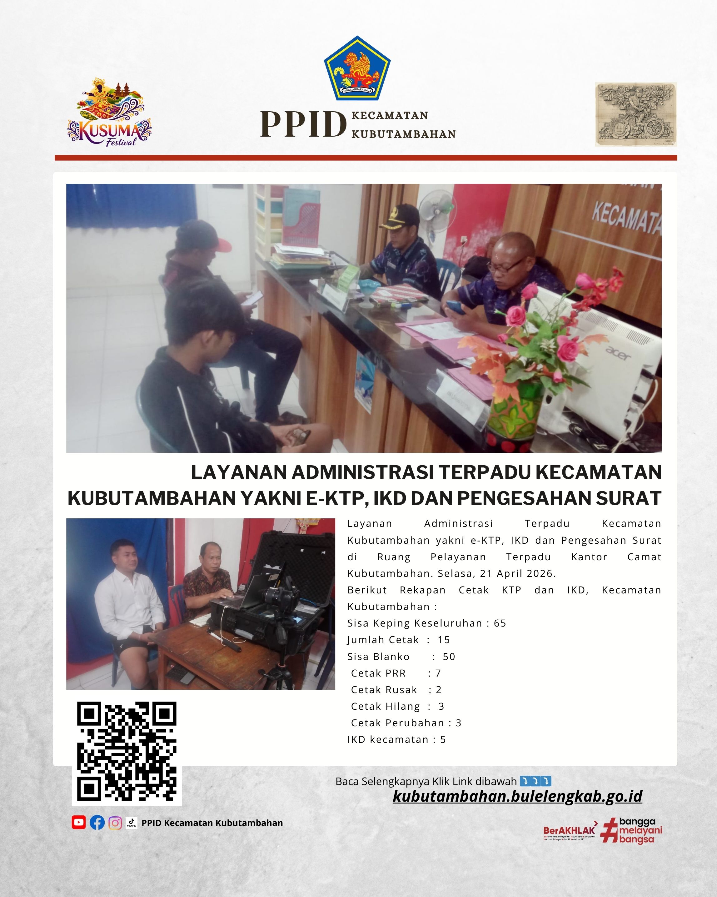 Layanan Administrasi Terpadu Kecamatan Kubutambahan yakni e-KTP, IKD dan Pengesahan Surat Edisi 21 April 2026