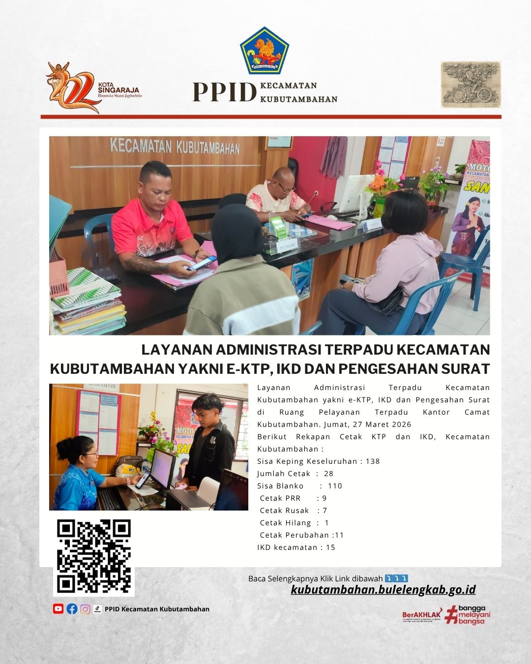 Layanan Administrasi Terpadu Kecamatan Kubutambahan yakni e-KTP, IKD dan Pengesahan Surat Edisi 27 Maret 2026