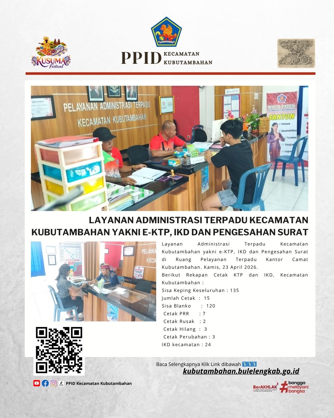Layanan Administrasi Terpadu Kecamatan Kubutambahan yakni e-KTP, IKD dan Pengesahan Surat Edisi 23 April 2026