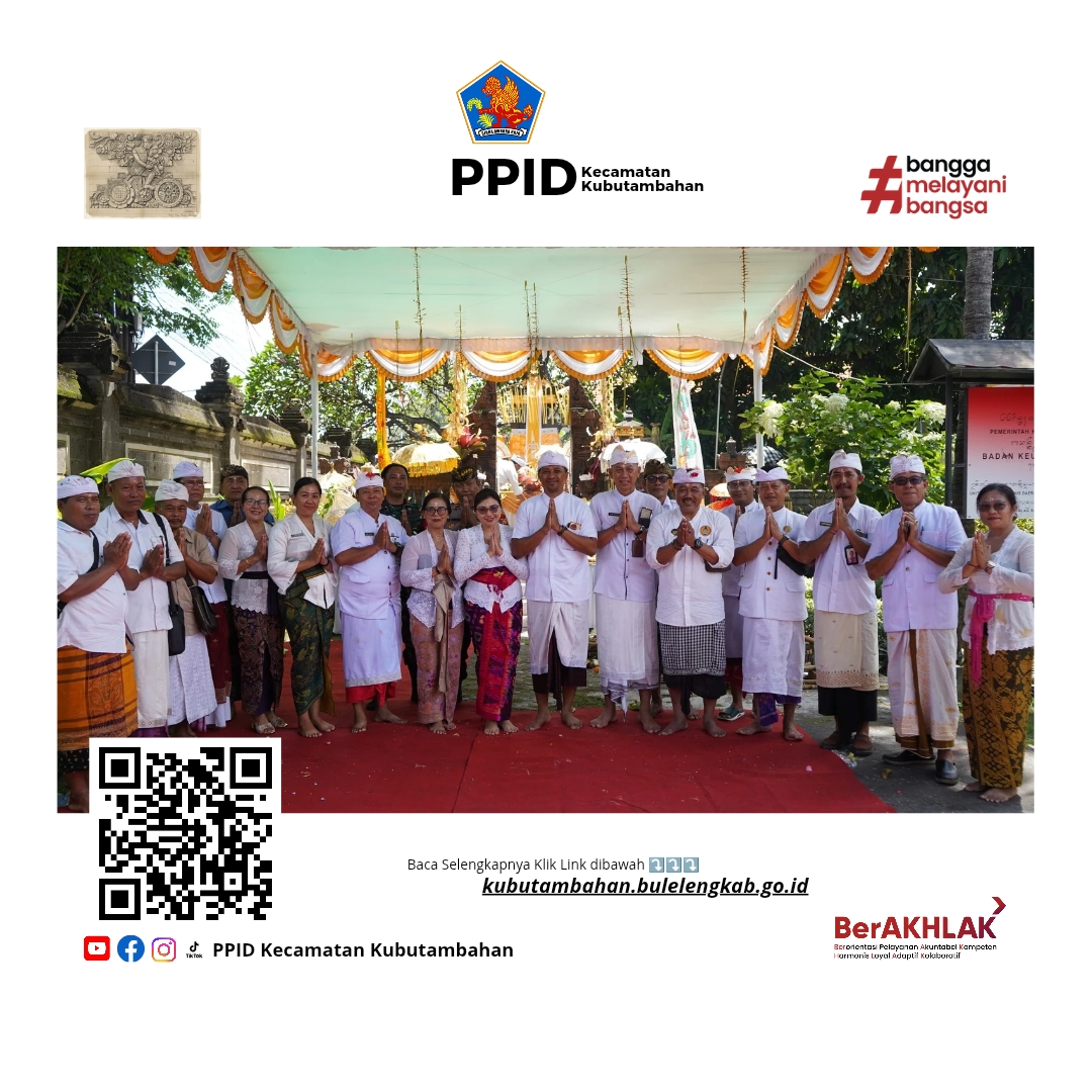 Kubutambahan – Bertepatan dengan Rahina Purnama Kawulu, Wuku Uye, Senin (2/2/2026), Camat Kubutambahan I Nyoman Arya Lanang Subahagia Putra bersama Ketua TP PKK Kecamatan Kubutambahan Ny. Wahyu Hirma Arya Lanang serta seluruh jajaran staf melaksanakan persembahyangan bersama dalam rangka Piodalan di Padmasana Kantor Camat Kubutambahan yang dirangkaikan dengan Upacara Melaspas Bangunan Kantor Camat Kubutambahan.