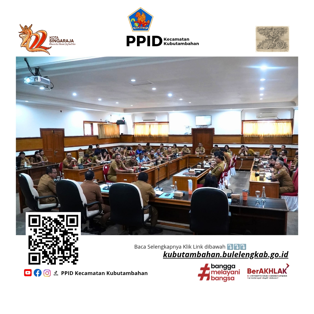 Singaraja, 23 Februari 2026 – Sekretaris Kecamatan (Sekcam) Kubutambahan I Nyoman Budiarsana bersama Staf Sosial Budaya (Sosbud) menghadiri Rapat Pemantapan Kegiatan Hari Ulang Tahun (HUT) Ke-422 Kota Singaraja yang dilaksanakan di Ruang Rapat Unit IV Kantor Bupati Buleleng.