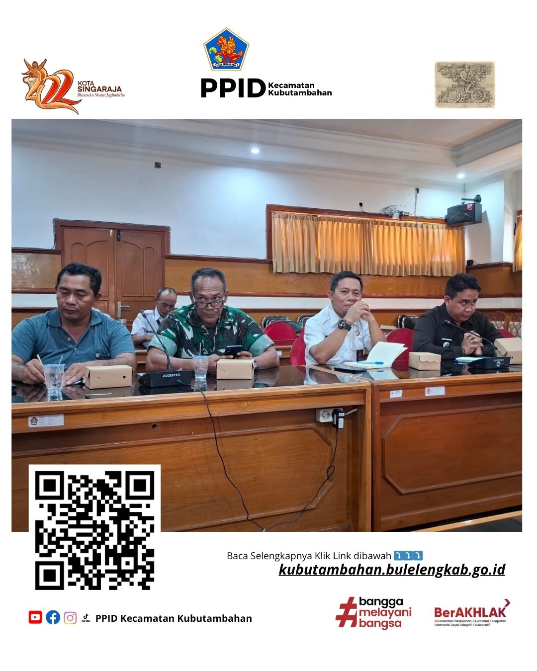 Buleleng – Sekretaris Camat (Sekcam) Kubutambahan, I Nyoman Budiarsana, menghadiri rapat koordinasi terkait pengamanan, pengaturan lalu lintas, dan parkir dalam rangka pelaksanaan kegiatan Singaraja Run, Parade Budaya Kecamatan, serta malam perayaan HUT ke-422 Kota Singaraja Tahun 2026, yang dilaksanakan pada Rabu (25/3/2026) di Ruang Rapat Unit IV Kantor Bupati Buleleng.
