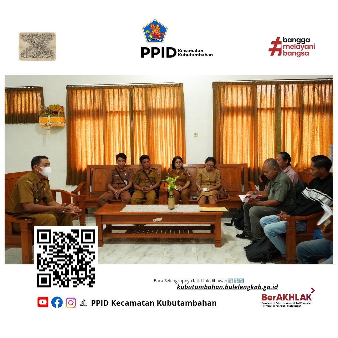 Rapat di pimpin oleh Camat Kubutambahan I Nyoman Arya Lanang Subahagia Putra dengan dihadiri Perwakilan Inspektur Daerah Kabupaten Buleleng, Perwakilan Bagian Pengadaan Barang/Jasa Setda Kabupaten Buleleng, Direktur CV. Wijaya Abadi Teknik, Konsultan Perencana dan Konsultan Pengawas.