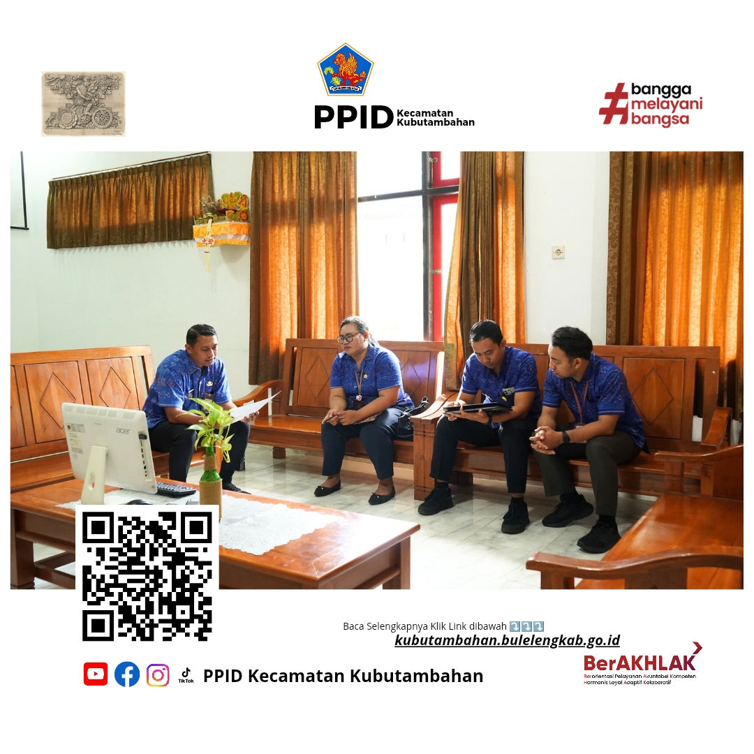Kubutambahan - Camat Kubutambahan, I Nyoman Arya Lanang Subahagia Putra, menerima audiensi dari Tim Inspektorat Daerah Kabupaten Buleleng dalam rangka progres tindak lanjut rekomendasi dari hasil temuan Inspektorat pada Renstra Kecamatan Kubutambahan Periode 2025 -2029, Selasa (23/12/2025).