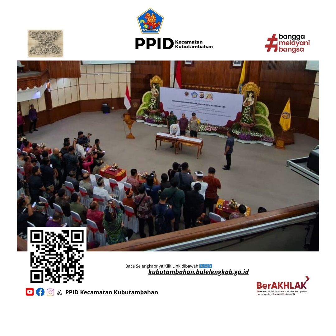 Denpasar - Camat Kubutambahan yang diwakili oleh Kasi Trantib dan Satpol PP Made Sukanatha menghadiri acara Penandatanganan Perpanjangan Nota Kesepakatan antara Pemerintah Provinsi Bali, Kepolisian Daerah Bali, Komando Resor Militer/Wirasatya, dan Majelis Desa Adat Provinsi Bali tentang Pelaksanaan Sistem Pengamanan Lingkungan Terpadu Berbasis Desa Adat (SIPANDU) Beradat.