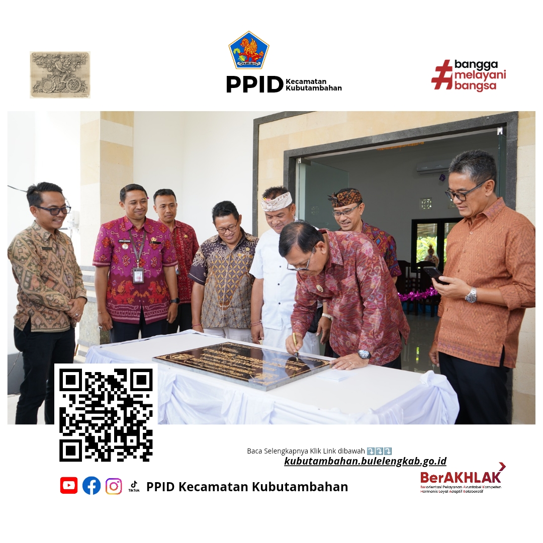BENGKALA – Camat Kubutambahan, I Nyoman Arya Lanang Subahagia Putra, menghadiri sekaligus mendampingi Bupati Buleleng I Nyoman Sutjidra bersama Wabup Buleleng Gede Supriatna dalam acara peresmian Gedung Kantor Perbekel Bengkala yang baru pada Selasa (6/1/2026). Peresmian ini menandai Pemdes Bengkala dalam upaya peningkatan kualitas pelayanan administrasi bagi warga masyarakat Desa Bengkala.
