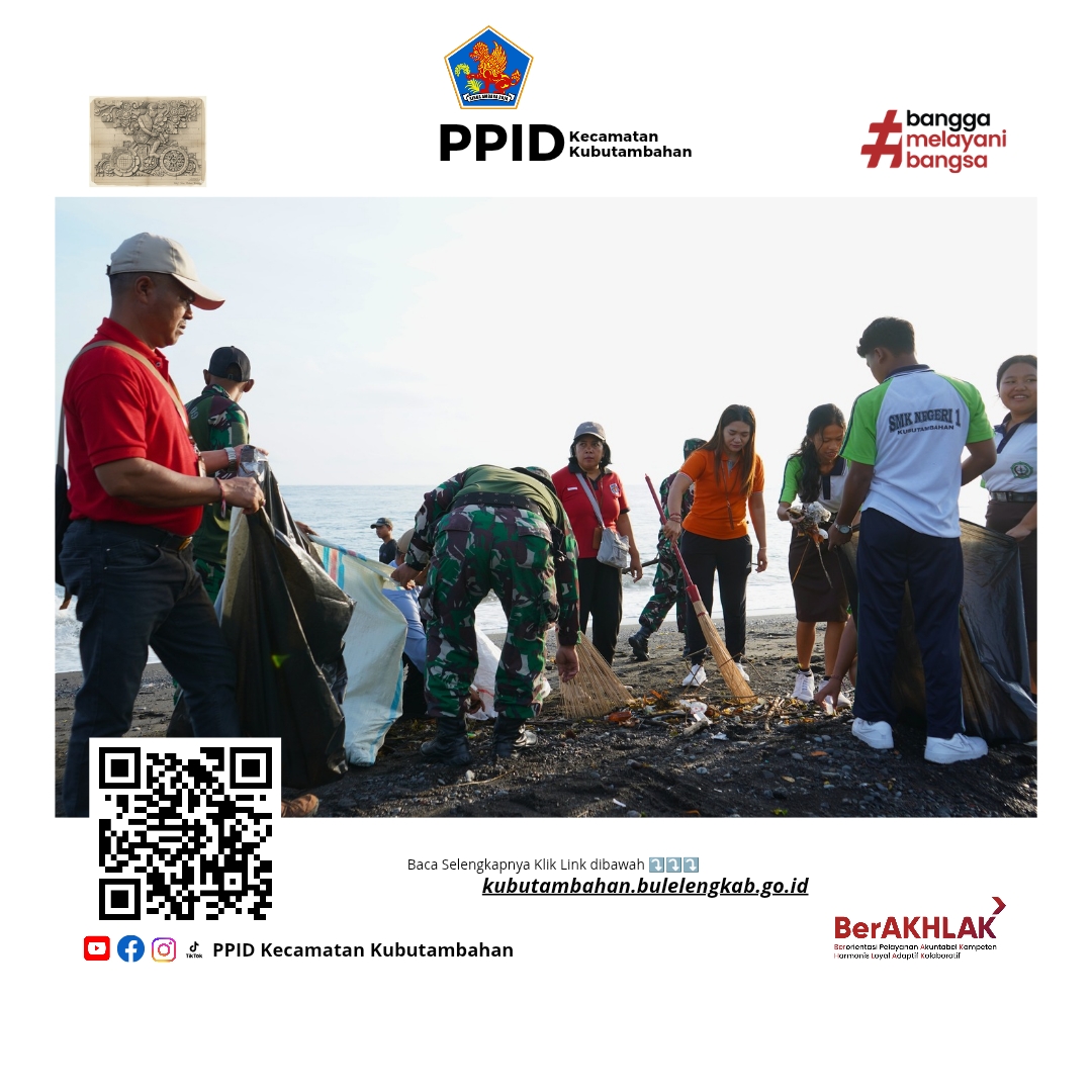 Kubutambahan - Kecamatan Kubutambahan yang dikoordinir oleh Kasi Trantib dan Satpol-PP Made Sukanatha bersama Kasubbag Umum dan Keuangan Made Sukrapa dan Staf ikut melaksanakan aksi bersih bersih Pantai di Pesisir Pantai Dalem Puri yang berlokasi di Banjar Dinas Kajekangin Desa Adat Kubutambahan. Kamis, 5 Februari 2026.