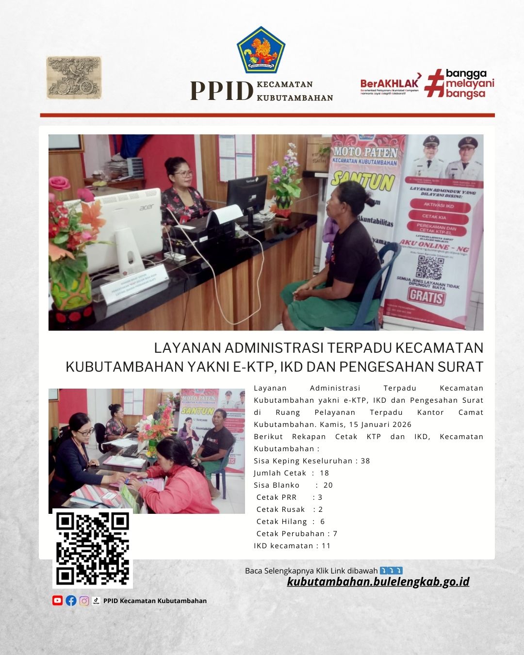 Layanan Administrasi Terpadu Kecamatan Kubutambahan yakni e-KTP, IKD dan Pengesahan Surat di Ruang Pelayanan Terpadu Kantor Camat Kubutambahan. Kamis, 15 Januari 2026