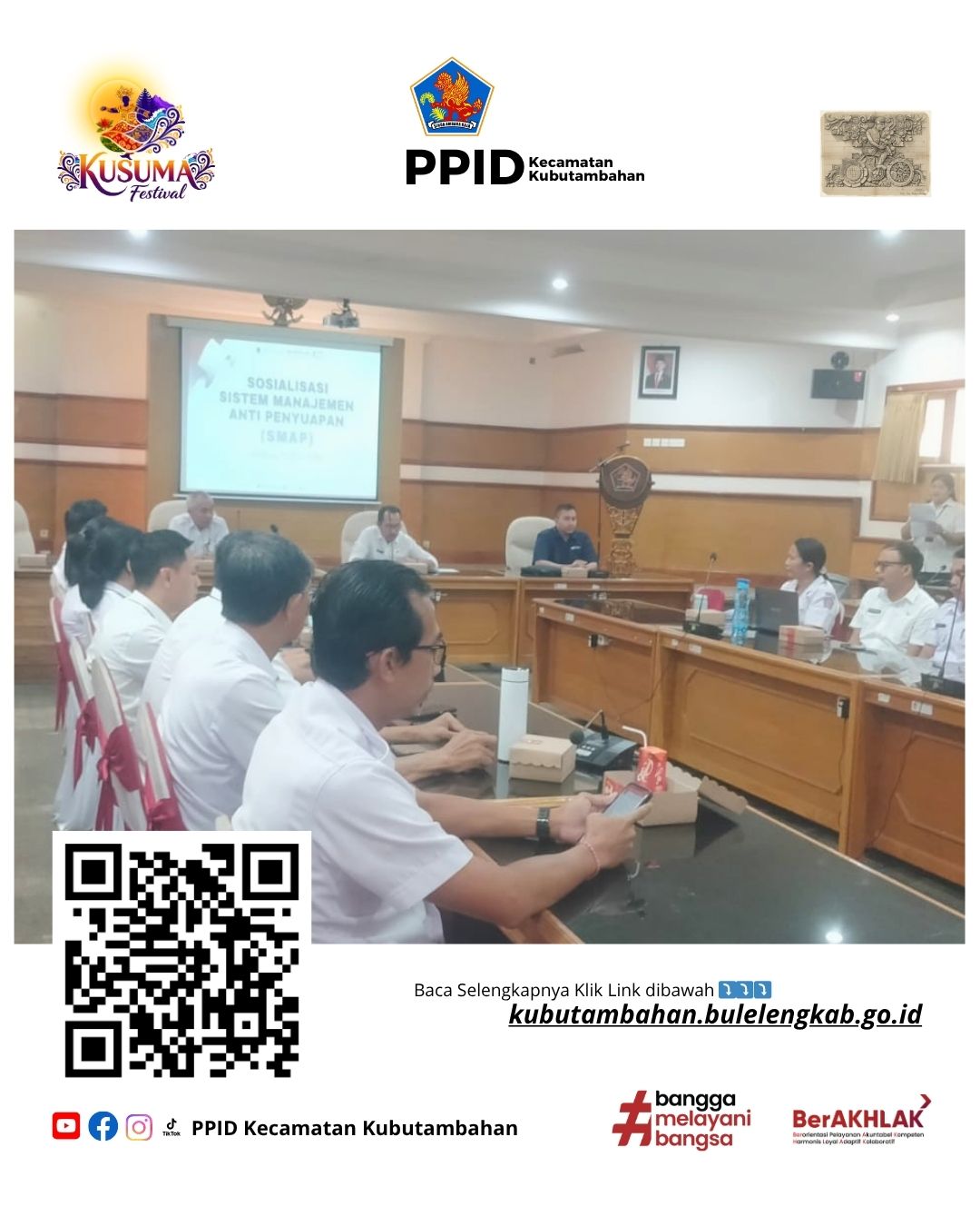 Buleleng – Wakili Camat Kubutambahan, Kasi Paten Made Widiarta, menghadiri kegiatan Sosialisasi Sistem Manajemen Anti Penyuapan (SMAP) pada Rabu (15/4/2026). Kegiatan tersebut berlangsung di Ruang Rapat Unit IV Sekretariat Daerah Kabupaten Buleleng.