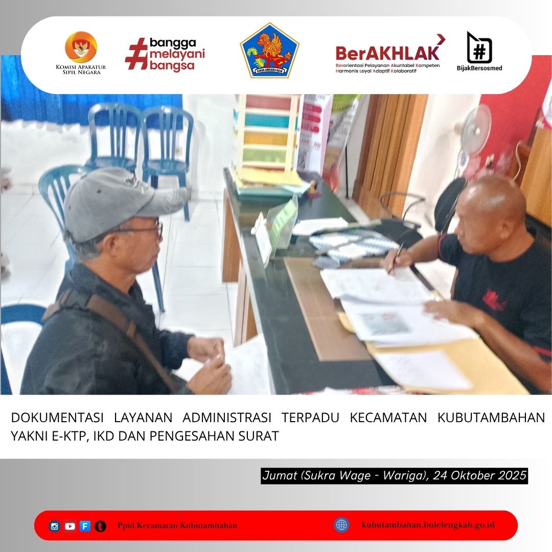 Dokumentasi Layanan Administrasi Terpadu Kecamatan Kubutambahan yakni e-KTP, IKD dan Pengesahan Surat di Ruang Pelayanan Terpadu Kantor Camat Kubutambahan. Jumat, 24 Oktober 2025