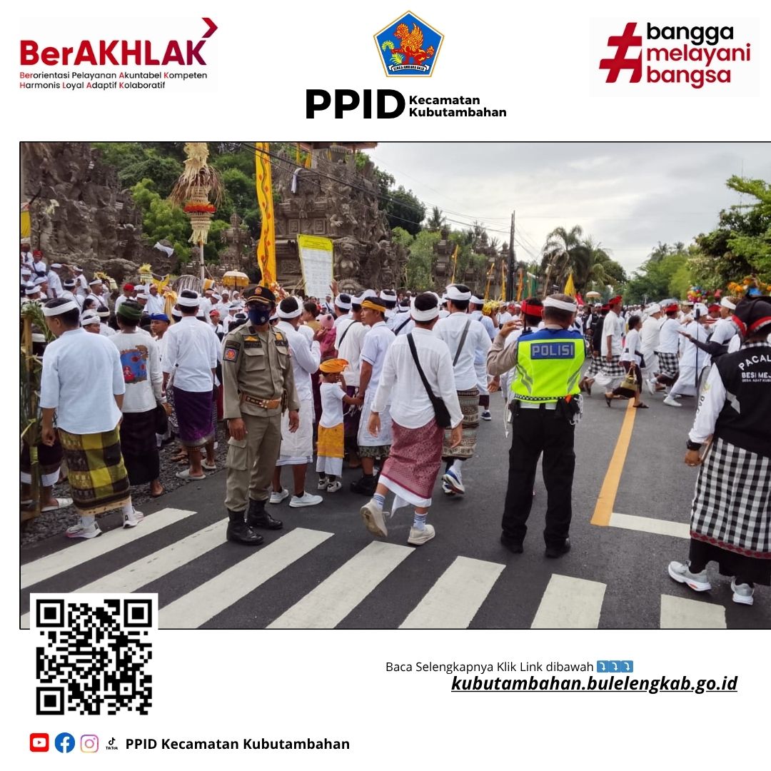 Kubutambahan - Satuan Polisi Pamong Praja (Satpol PP) Kecamatan Kubutambahan melaksanakan pengamanan kegiatan upacara keagamaan Ida Betara Turun Kabeh di Pura Puseh Penegil Dharma pada Minggu, 2 November 2025. Pengamanan ini merupakan bagian dari rangkaian upacara Melasti yang puncaknya masih berlangsung.