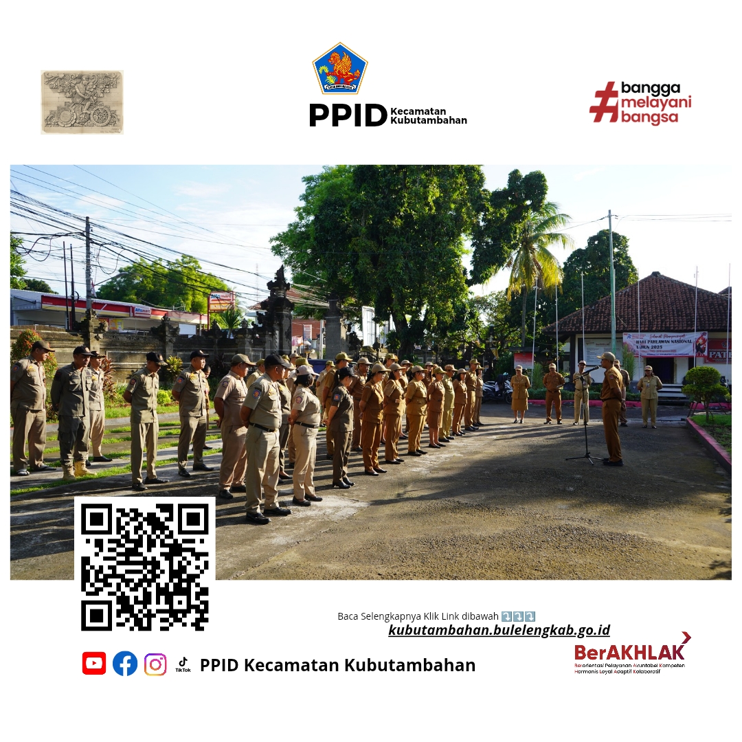 Apel pagi dihadiri oleh, PLt. Sekcam Kubutambahan, Para Kasi, Kasubbag, Staf ASN Kantor Camat Kubutambahan dan Koordinator PLKB Kecamatan Kubutambahan beserta Staf.