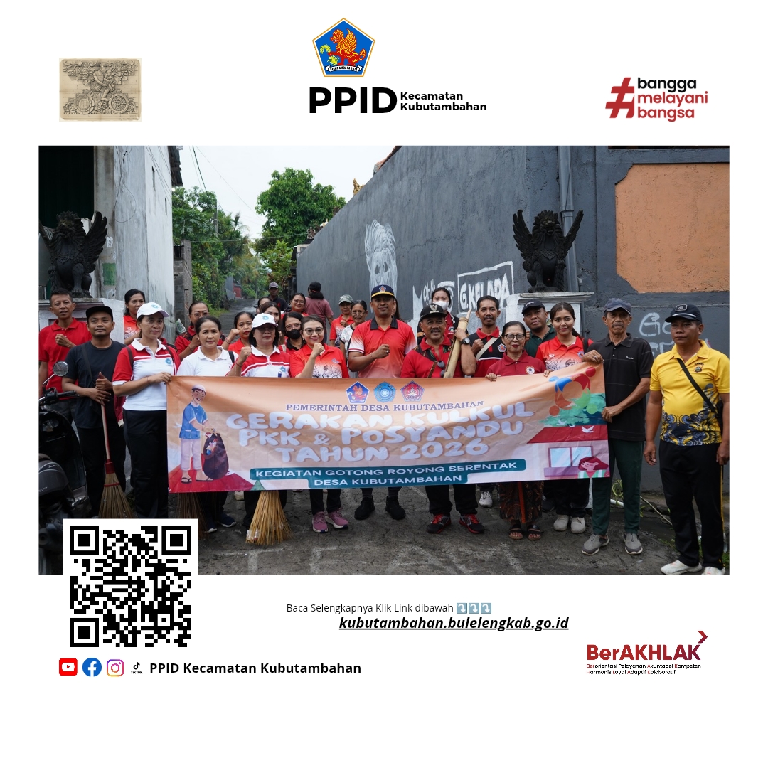 Lebih lanjut disampaikan bahwa Gerakan Kulkul PKK/Posyandu tidak hanya dilaksanakan di Desa Kubutambahan, namun juga serentak dilaksanakan di masing-masing desa se-Kecamatan Kubutambahan sebagai bentuk sinergi dan komitmen bersama dalam mendukung program kebersihan dan pemberdayaan masyarakat.