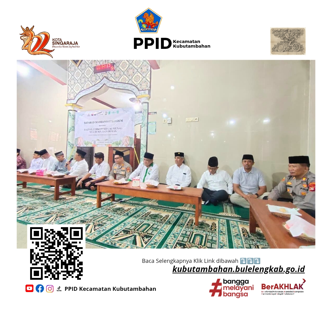Kegiatan Safari Ramadhan ini merupakan rangkaian program Badan Amil Zakat Nasional (BAZNAS) Kabupaten Buleleng dalam rangka mempererat silaturahmi antara pemerintah daerah dengan masyarakat, khususnya umat Muslim di wilayah Kecamatan Kubutambahan Kabupaten Buleleng.