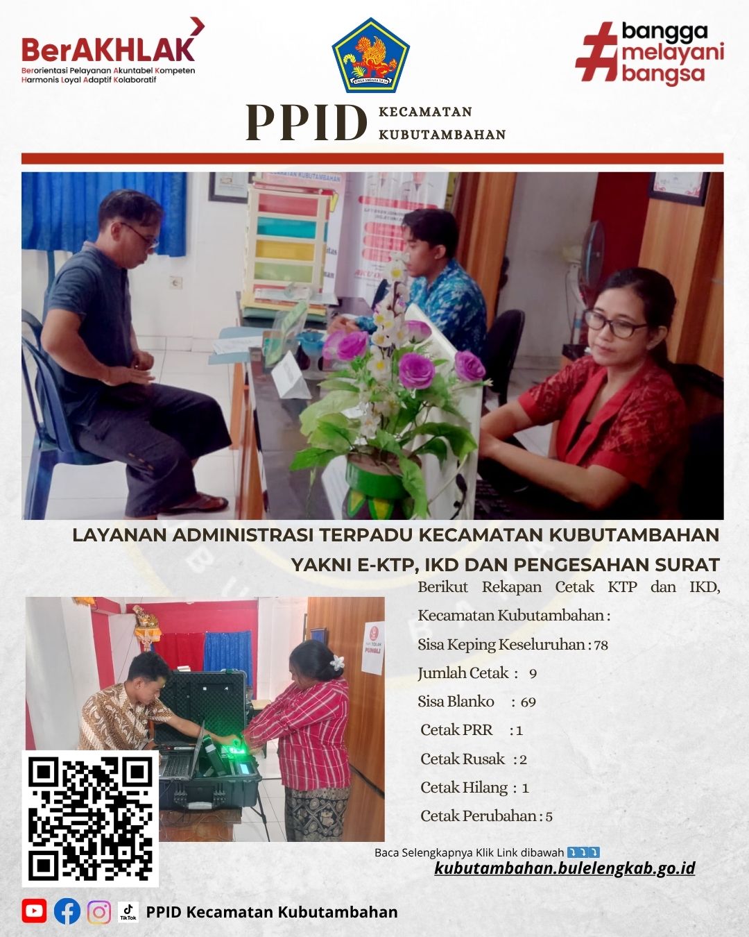 Berikut Rekapan Cetak KTP dan IKD, Kecamatan Kubutambahan :