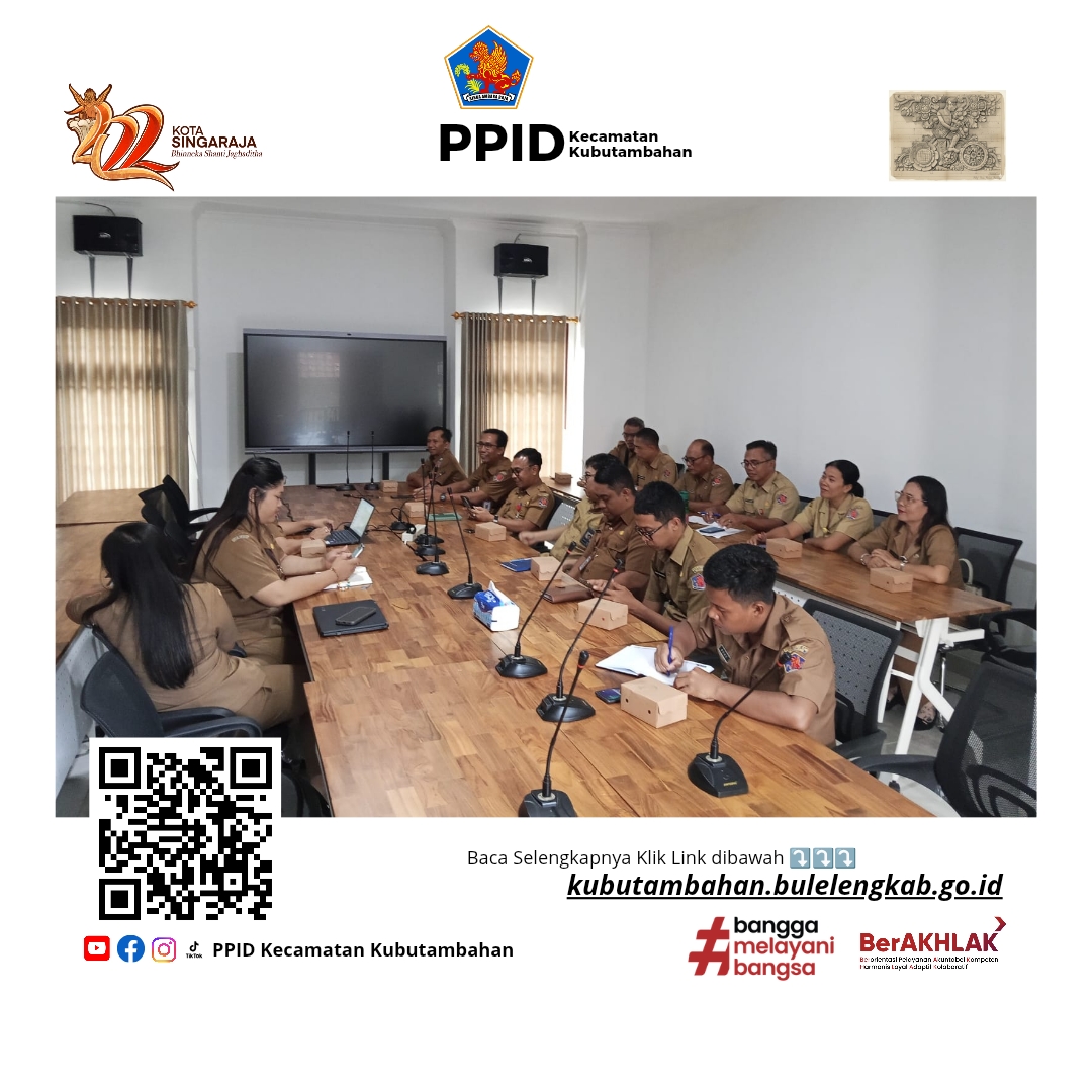 Buleleng — Kepala Seksi (Kasi) Pemerintahan Kecamatan Kubutambahan, Made Artawati, bersama staf Pengadministrasi Pemerintahan menghadiri Rapat Pembahasan Rencana Lomba Cerdas Cermat (LCC) Antar Perangkat Desa pada Senin (2/3/2026). Kegiatan tersebut dilaksanakan di Ruang Rapat Inspektorat Daerah Kabupaten Buleleng.