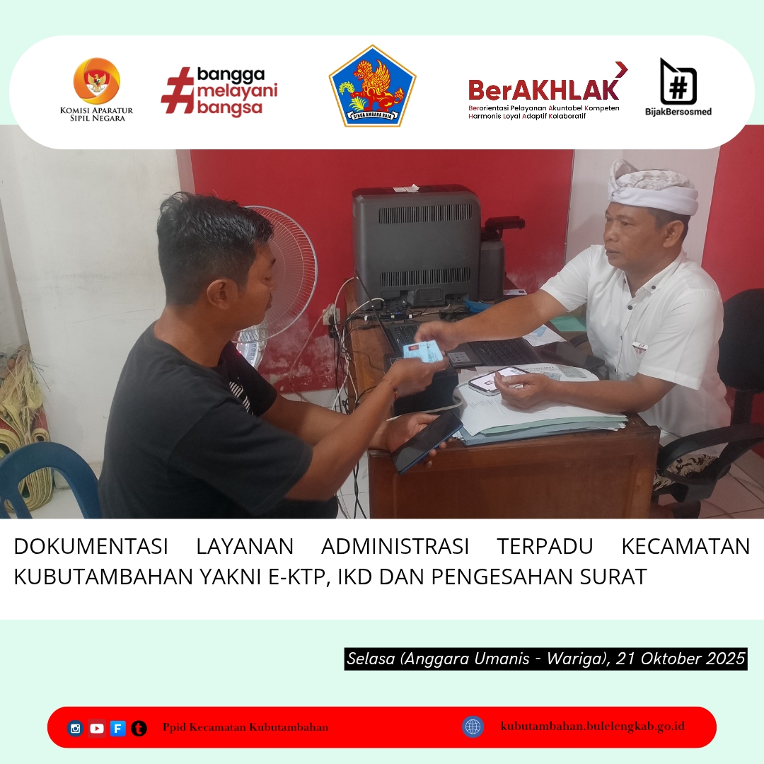 Dokumentasi Layanan Administrasi Terpadu Kecamatan Kubutambahan yakni e-KTP, IKD dan Pengesahan Surat di Ruang Pelayanan Terpadu Kantor Camat Kubutambahan. Selasa, 21 Oktober 2025