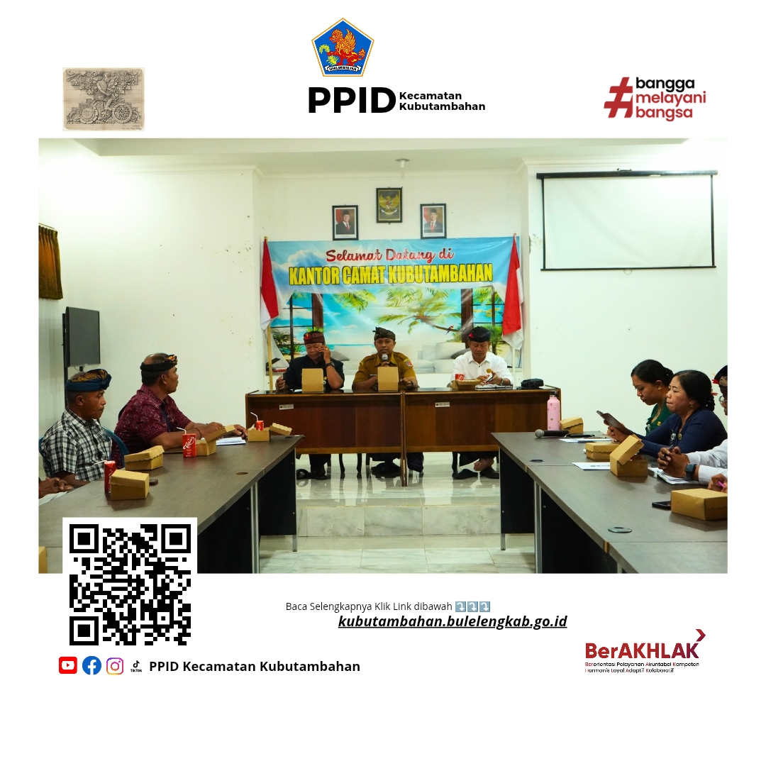 Kubutambahan, Buleleng – Camat Kubutambahan I Nyoman Arya Lanang Subahagia Putra menghadiri Rapat Koordinasi (Rakor) dalam rangka membahas persiapan pelaksanaan Program Bulan Bahasa Bali VIII Tahun 2026 serta penyampaian Program Desa Adat Tahun 2026 yang diselenggarakan oleh Majelis Desa Adat (MDA) Kecamatan Kubutambahan. Senin (9/2/2026). Bertempat di Ruang Rapat Kantor Camat Kubutambahan.