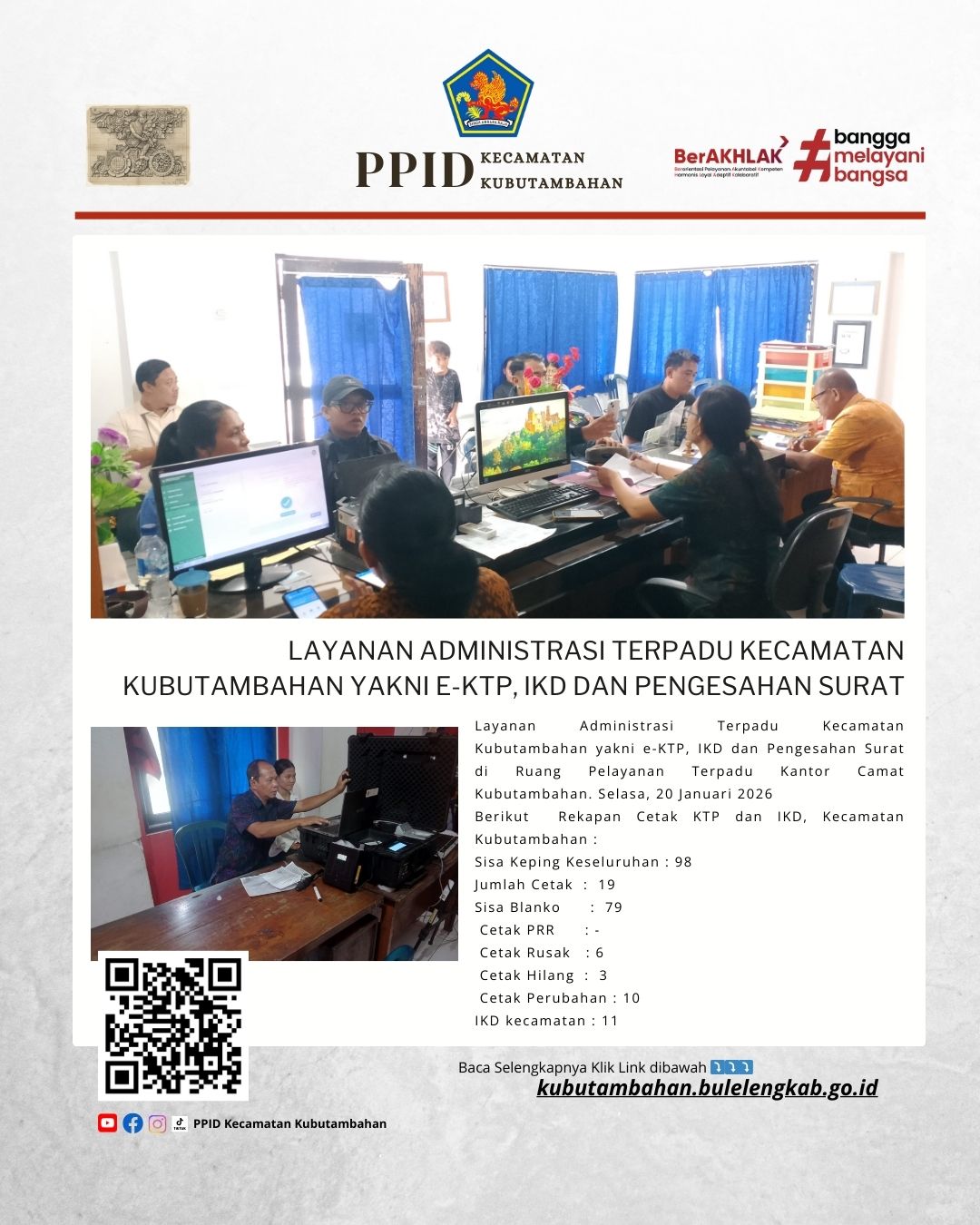 Layanan Administrasi Terpadu Kecamatan Kubutambahan yakni e-KTP, IKD dan Pengesahan Surat di Ruang Pelayanan Terpadu Kantor Camat Kubutambahan. Selasa, 20 Januari 2026