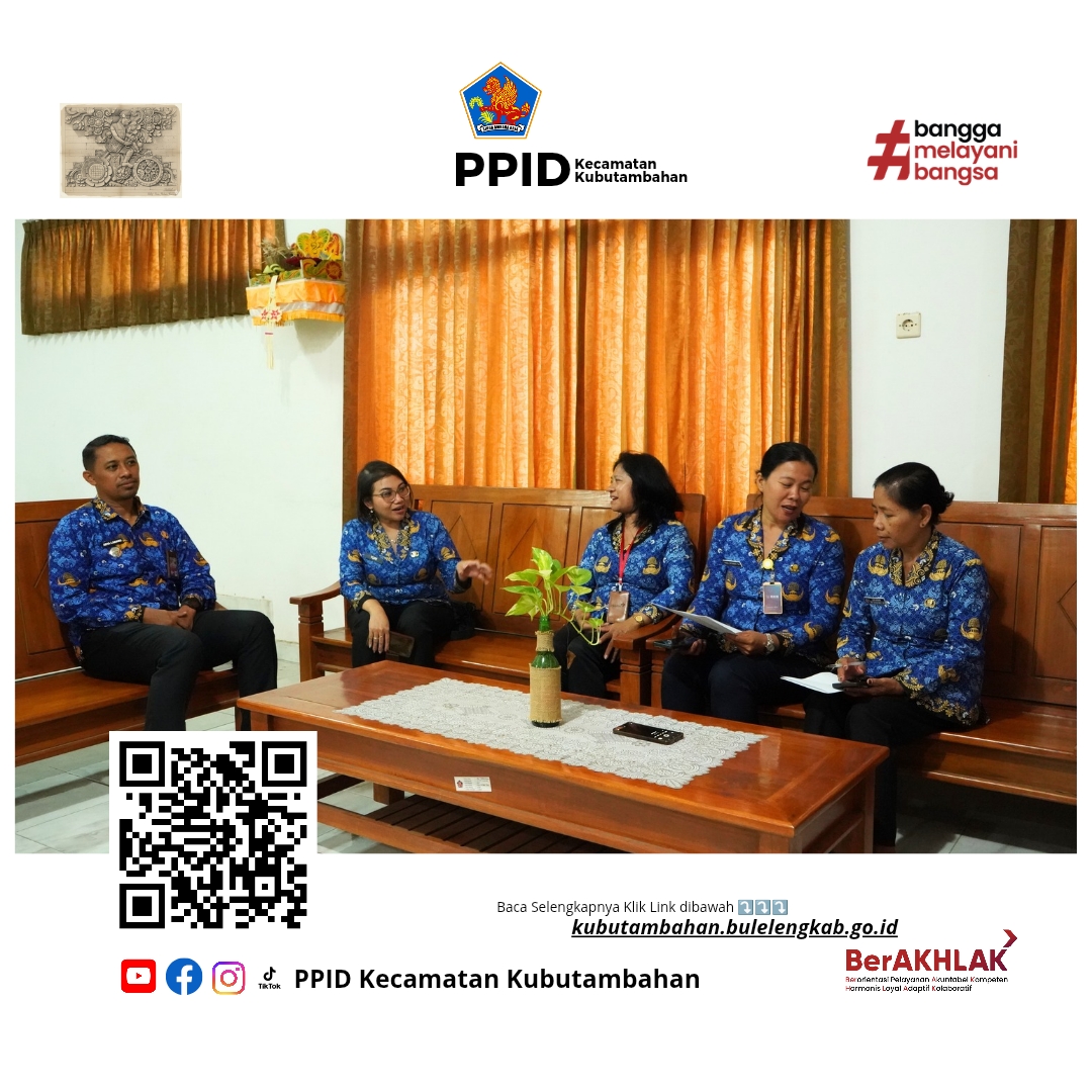 KUBUTAMBAHAN – Camat I Nyoman Arya Lanang Subahagia Putra bersama Ketua Tim Penggerak (TP) PKK Kecamatan Kubutambahan, Ny. Wahyu Hirma Arya Lanang didampingi Sekretaris TP PKK, menerima audensi terkait koordinasi dari Koordinator PLKB Kecamatan Kubutambahan pada Rabu (17/12/2025). Pertemuan ini berlangsung di Kantor Camat Kubutambahan.
