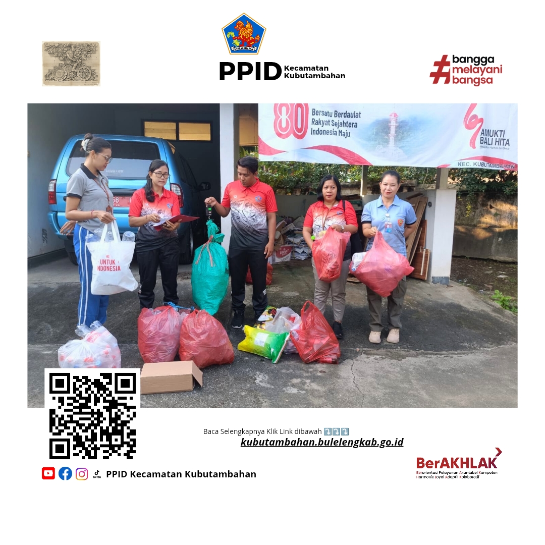 Kubutambahan – Dalam rangka mendukung program Buleleng Bersih Sampah Plastik, seluruh pegawai Kecamatan Kubutambahan secara rutin melaksanakan kegiatan menabung sampah di Bank Sampah “Kutambah Asri” setiap hari Jumat.
