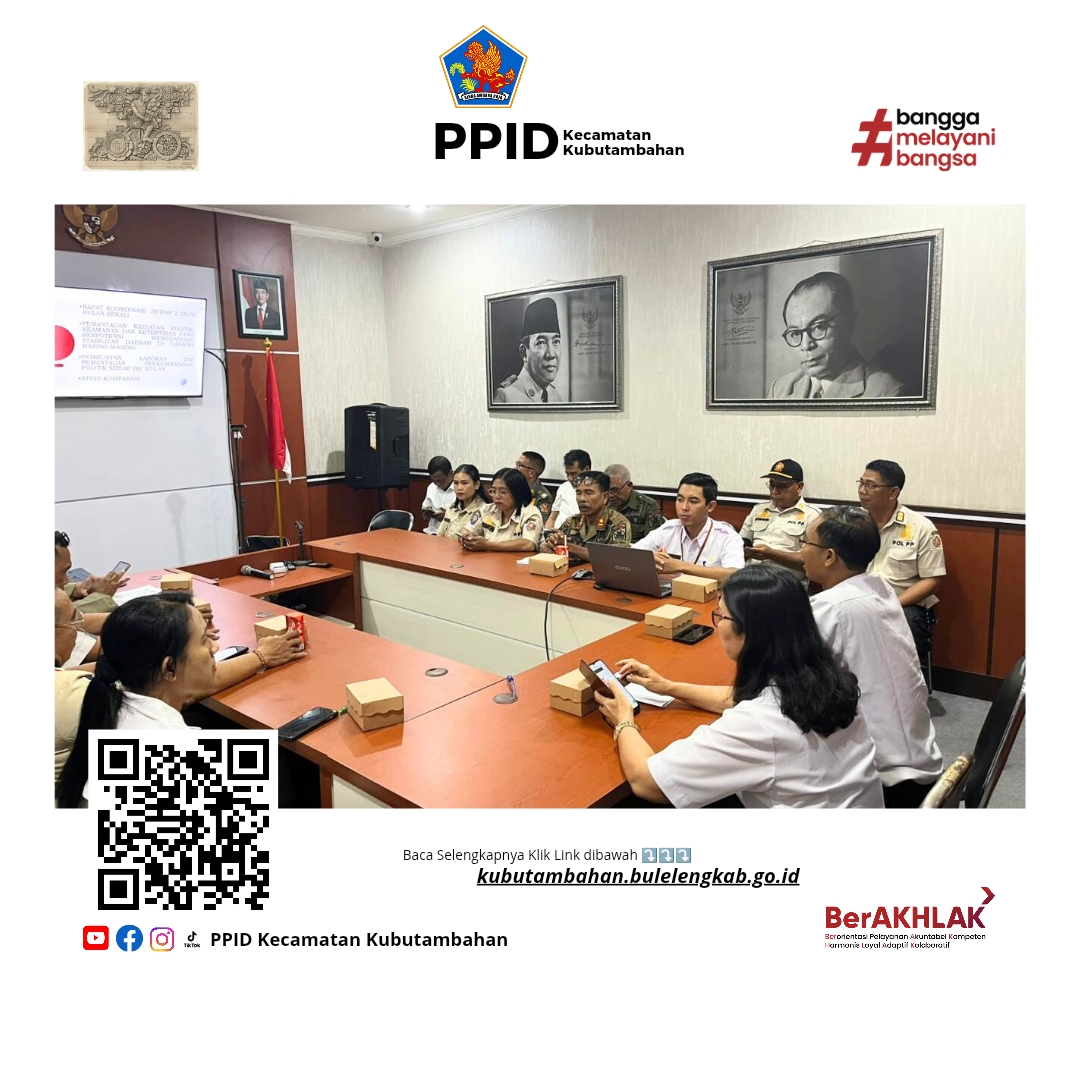 Pada kesempatan tersebut juga disampaikan struktur Surat Keputusan (SK) Tim Koordinasi Perkembangan Politik Kabupaten Buleleng yang berpedoman pada Peraturan Menteri Dalam Negeri Nomor 61 Tahun 2011 tentang Pedoman Pelaporan dan Pemantauan Perkembangan Politik di Daerah. Seluruh peserta diharapkan aktif melakukan pemantauan serta menyampaikan setiap permasalahan yang berkaitan dengan perkembangan politik kepada Kesbangpol agar dapat segera ditindaklanjuti.