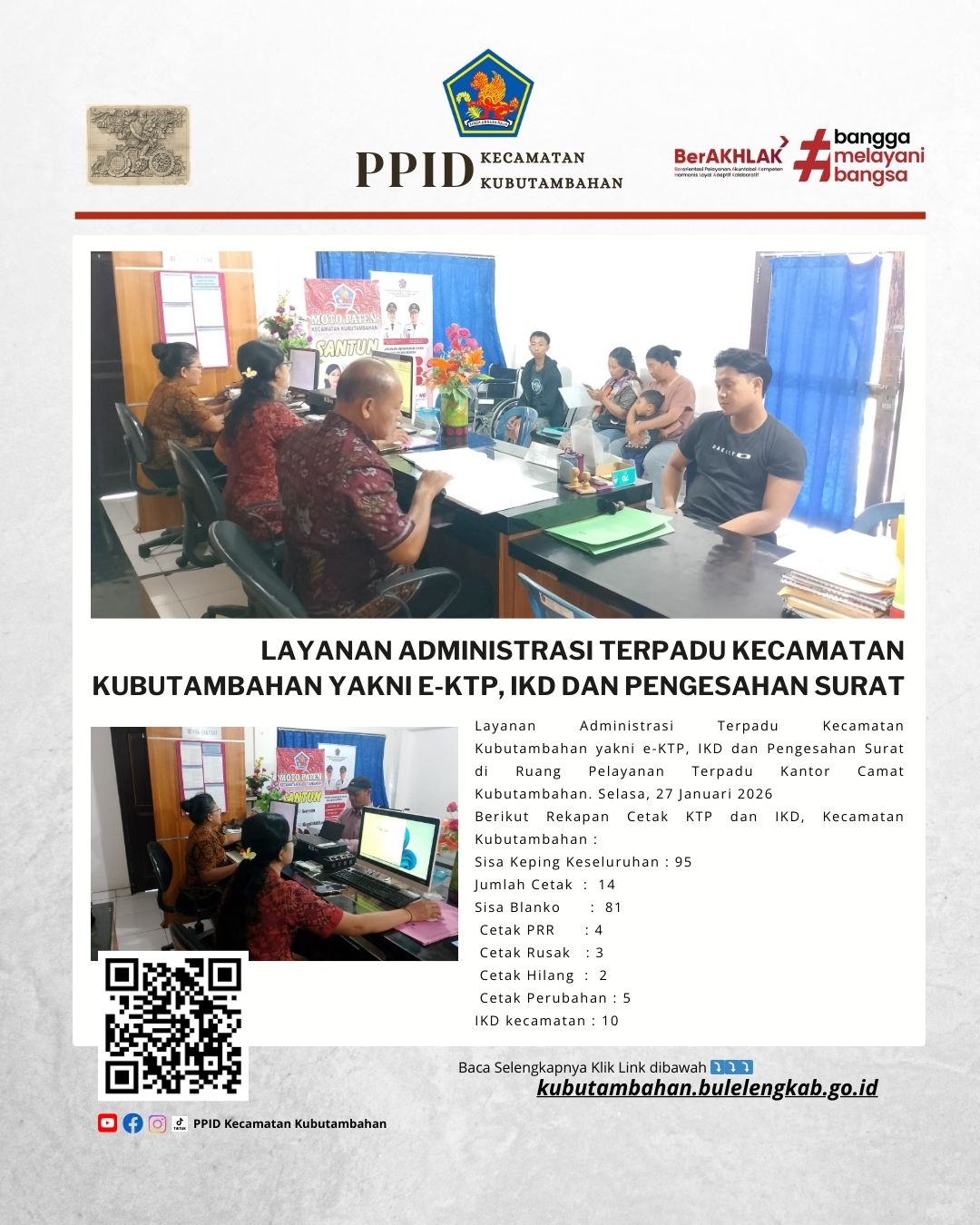 Layanan Administrasi Terpadu Kecamatan Kubutambahan yakni e-KTP, IKD dan Pengesahan Surat di Ruang Pelayanan Terpadu Kantor Camat Kubutambahan. Selasa, 27 Januari 2026