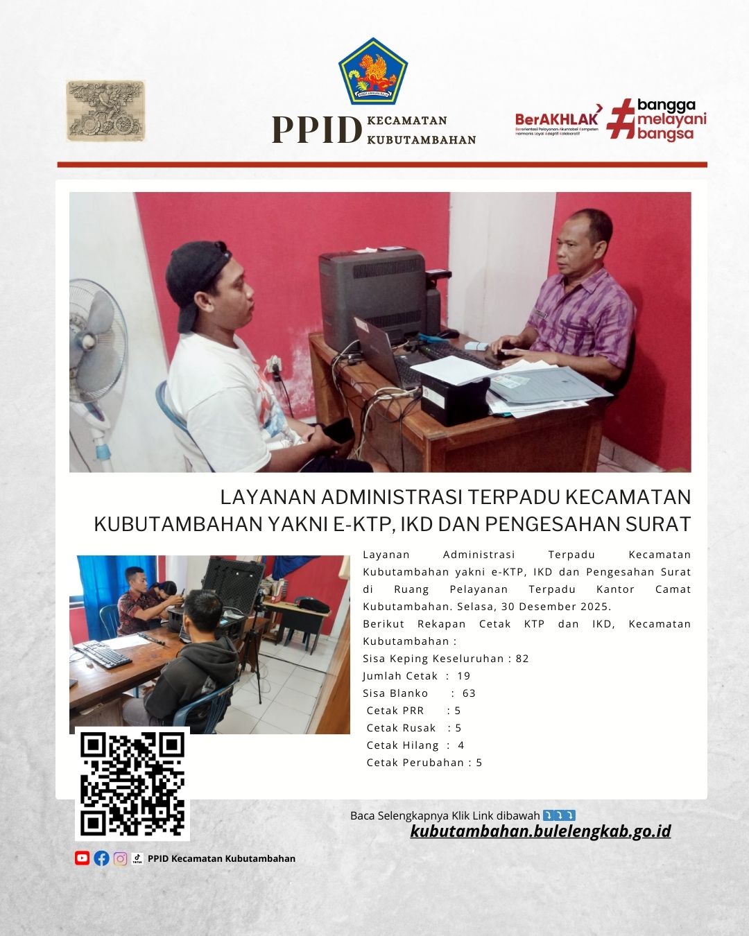 Dokumentasi Layanan Administrasi Terpadu Kecamatan Kubutambahan yakni e-KTP, IKD dan Pengesahan Surat di Ruang Pelayanan Terpadu Kantor Camat Kubutambahan. Selasa, 30 Desember 2025.