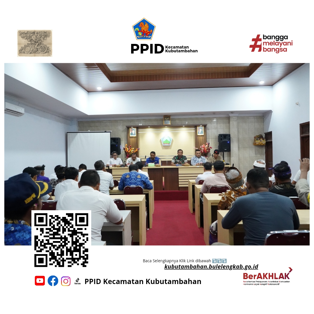 Rapat yang dipimpin langsung oleh Camat Kubutambahan, I Nyoman Arya Lanang Subahagia Putra, dihadiri oleh Kapolsek Kubutambahan, Danramil 1609-02/Kubutambahan, Para Pejabat Struktural Kecamatan Kubutambahan, Ketua Forkom Perbekel Kec. Kubutambahan dan Perbekel se-Kec. Kubutambahan, Ketua Forkom BPD Kec. Kubutambahan, Bendesa Alitan MDA Kecamatan Kubutambahan dan Klian Desa Adat se-Kecamatan Kubutambahan.