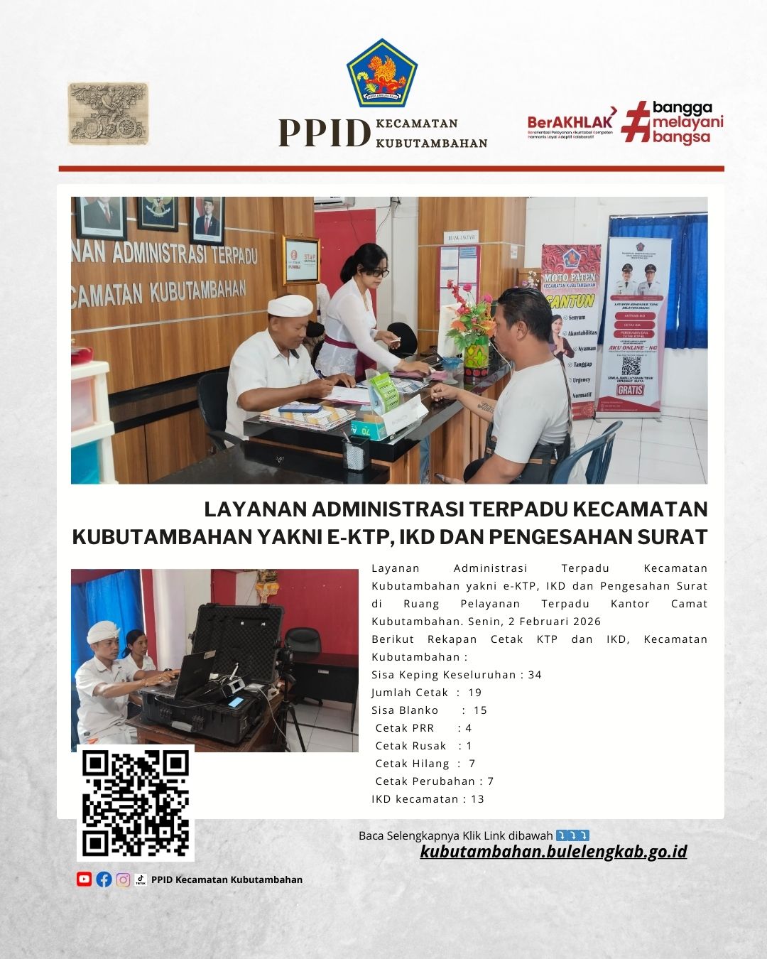 Layanan Administrasi Terpadu Kecamatan Kubutambahan yakni e-KTP, IKD dan Pengesahan Surat di Ruang Pelayanan Terpadu Kantor Camat Kubutambahan. Senin, 2 Februari 2026