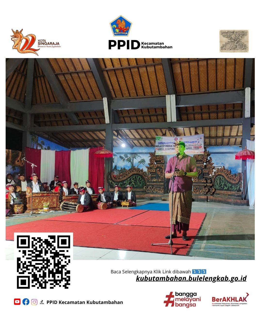 Dalam sambutan Bupati Buleleng yang dibacakan oleh Camat Kubutambahan, disampaikan apresiasi atas terselenggaranya kegiatan sosialisasi yang dikemas secara kreatif dan edukatif melalui seni pertunjukan Bondres. Pendekatan berbasis budaya lokal dinilai efektif dalam menyampaikan pesan kepada masyarakat, khususnya terkait bahaya penyalahgunaan narkoba dan penyebaran HIV/AIDS.
