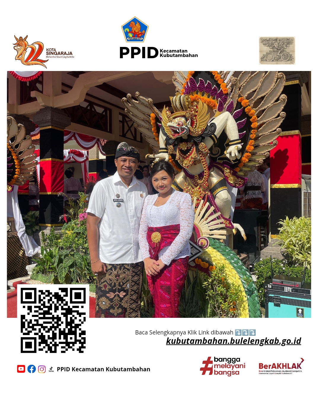 Singaraja — Camat Kubutambahan I Nyoman Arya Lanang Subahagia Putra bersama Ketua TP PKK Kecamatan Kubutambahan Ny. Wahyu Hirma Arya Lanang menghadiri Upacara Peringatan Hari Ulang Tahun (HUT) ke-422 Kota Singaraja yang dilaksanakan pada Senin (30/3/2026). Kegiatan tersebut berlangsung di Taman Kota Singaraja.