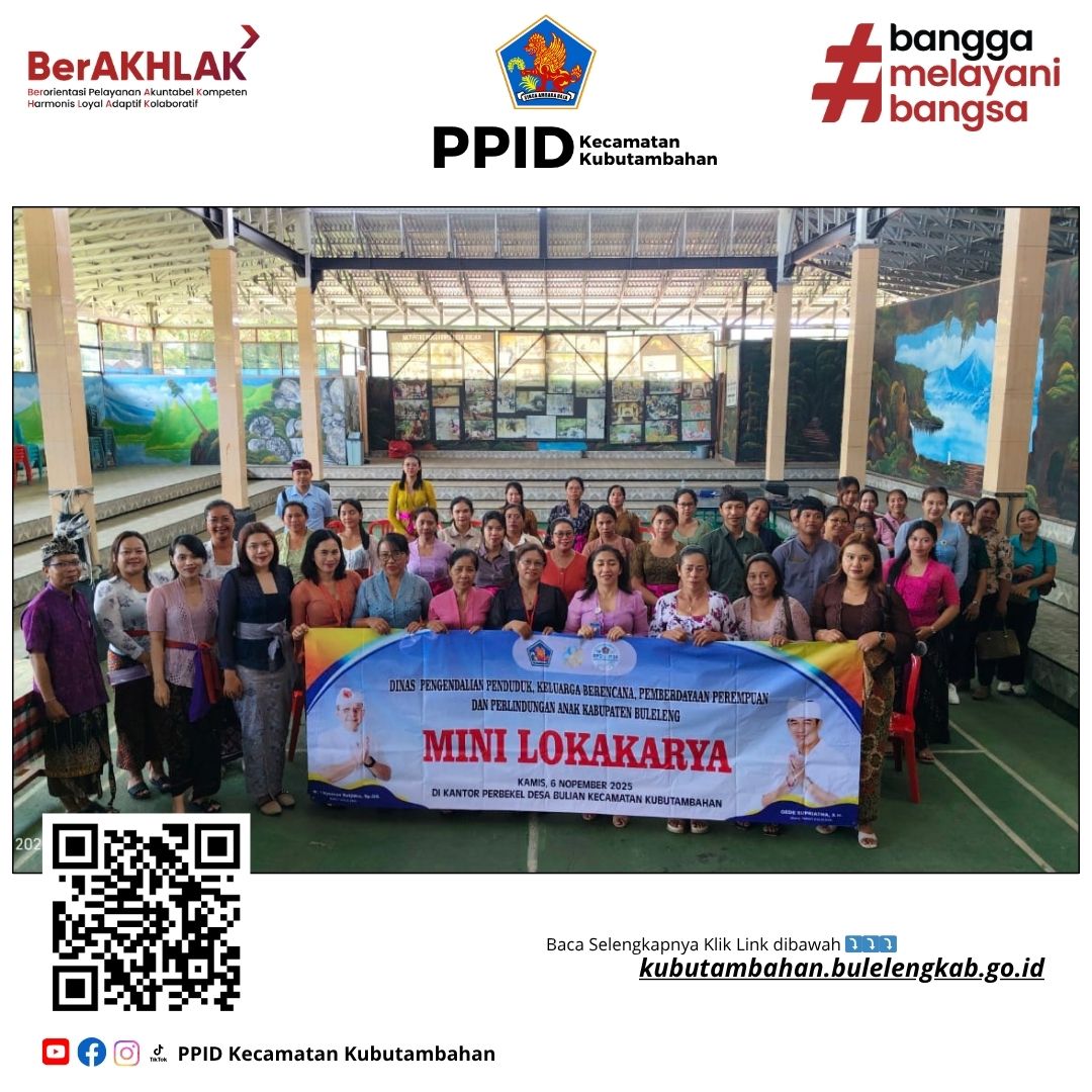 Bulian, 6 November 2025 – Kecamatan Kubutambahan menggelar Mini Lokakarya dalam rangka evaluasi dan pemantauan pelaksanaan pendampingan keluarga di tingkat kecamatan. Kegiatan yang berlangsung di Ruang Rapat Kantor Desa Bulian ini bertujuan untuk memastikan program pembangunan keluarga, kependudukan, dan keluarga berencana (Bangga Kencana) berjalan efektif serta mengoptimalkan upaya penurunan stunting.