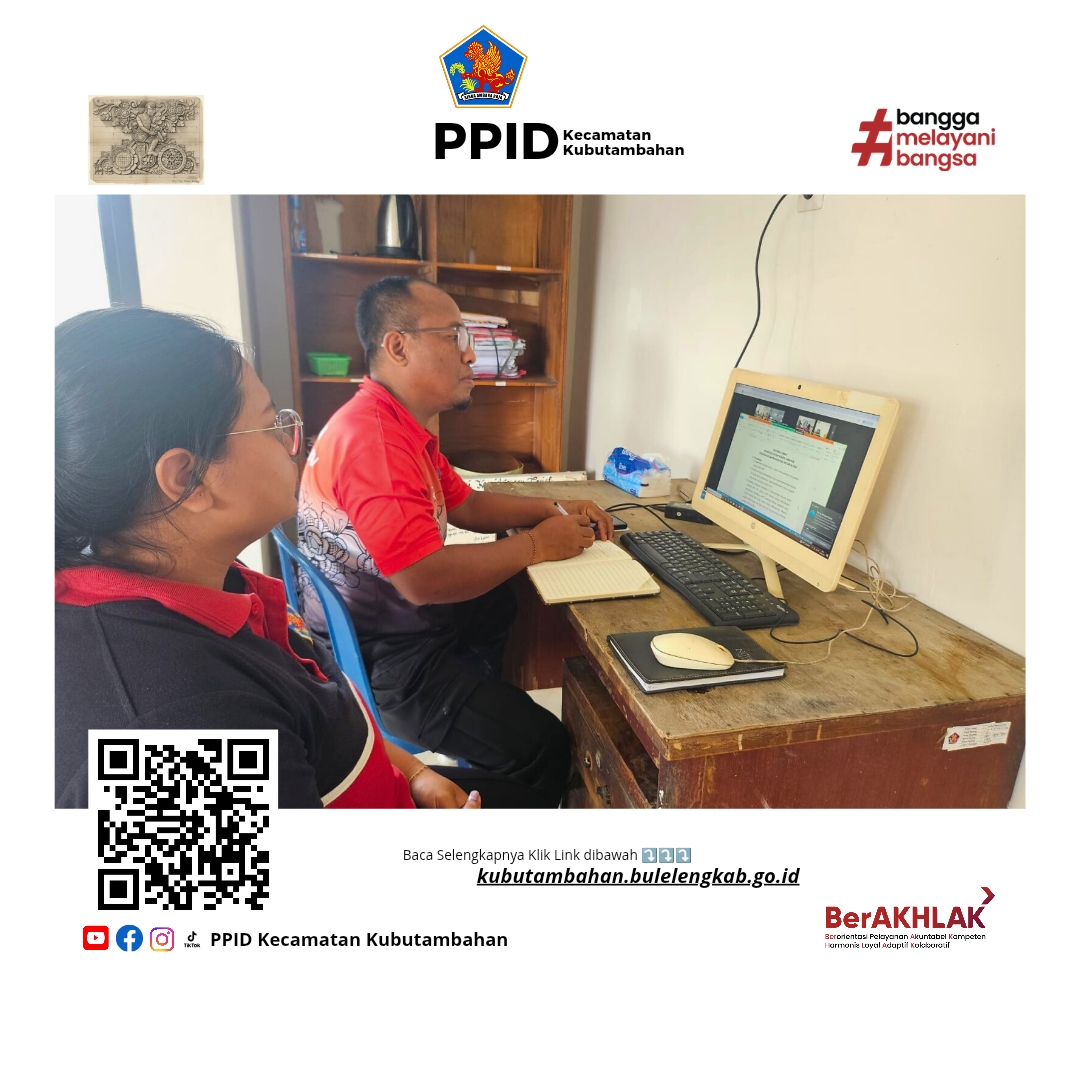 Kubutambahan, Kamis (5/1/2026) — Staf Sosial Budaya Kecamatan Kubutambahan, I Ketut Trisila bersama Ketut Ria Wicahyani, mengikuti kegiatan Zoom Meeting Technical Meeting pelaksanaan Lomba Bulan Bahasa Bali VIII Tahun 2026.