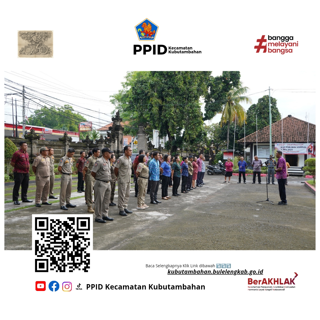 KUBUTAMBAHAN – Menindaklanjuti hasil laporan monitoring dan evaluasi (monev dari Inspektorat Daerah Kabupaten Buleleng terkait penerapan disiplin dan kehadiran pegawai, Camat Kubutambahan, I Nyoman Arya Lanang Subahagia Putra, memimpin apel pagi di halaman kantor kecamatan. Apel tersebut dilaksanakan pada Selasa, 16 Desember 2025, dan dihadiri oleh para Kasi, Kasubbag, Staf, serta Koordinator PLKB Kecamatan Kubutambahan.