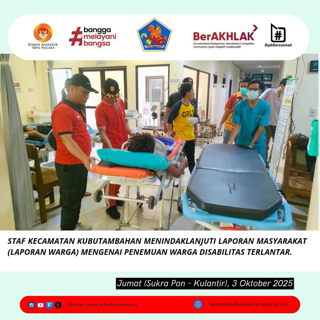 Kecamatan Kubutambahan melalui Staf Satpol PP dan Staf Seksi Sosbud bergerak cepat menindaklanjuti laporan masyarakat (laporan warga) mengenai penemuan warga disabilitas terlantar. Jumat, 3 Oktober 2025.
