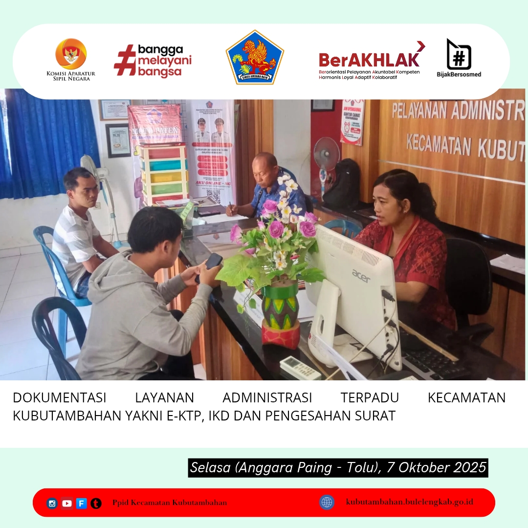 Dokumentasi Layanan Administrasi Terpadu Kecamatan Kubutambahan yakni e-KTP, IKD dan Pengesahan Surat di Ruang Pelayanan Terpadu Kantor Camat Kubutambahan. Selasa, 7 Oktober 2025