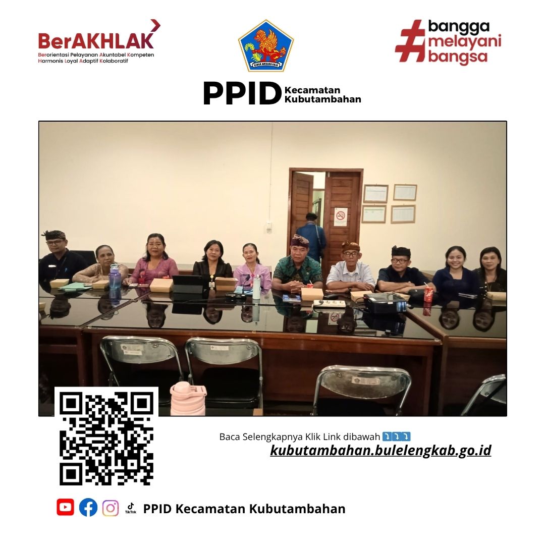 Buleleng, 13 November 2025 – Kepala Seksi (Kasi) Pemerintahan, Made Artawati, mewakili Camat Kubutambahan dalam Forum Diskusi Pembahasan Laporan Antara Penyusunan Kajian Kepuasan Masyarakat Terhadap Kinerja Pemerintah Kabupaten Buleleng. Acara ini diselenggarakan di aula ruang rapat Badan Riset dan Inovasi Daerah (BRIDA) Kabupaten Buleleng.
