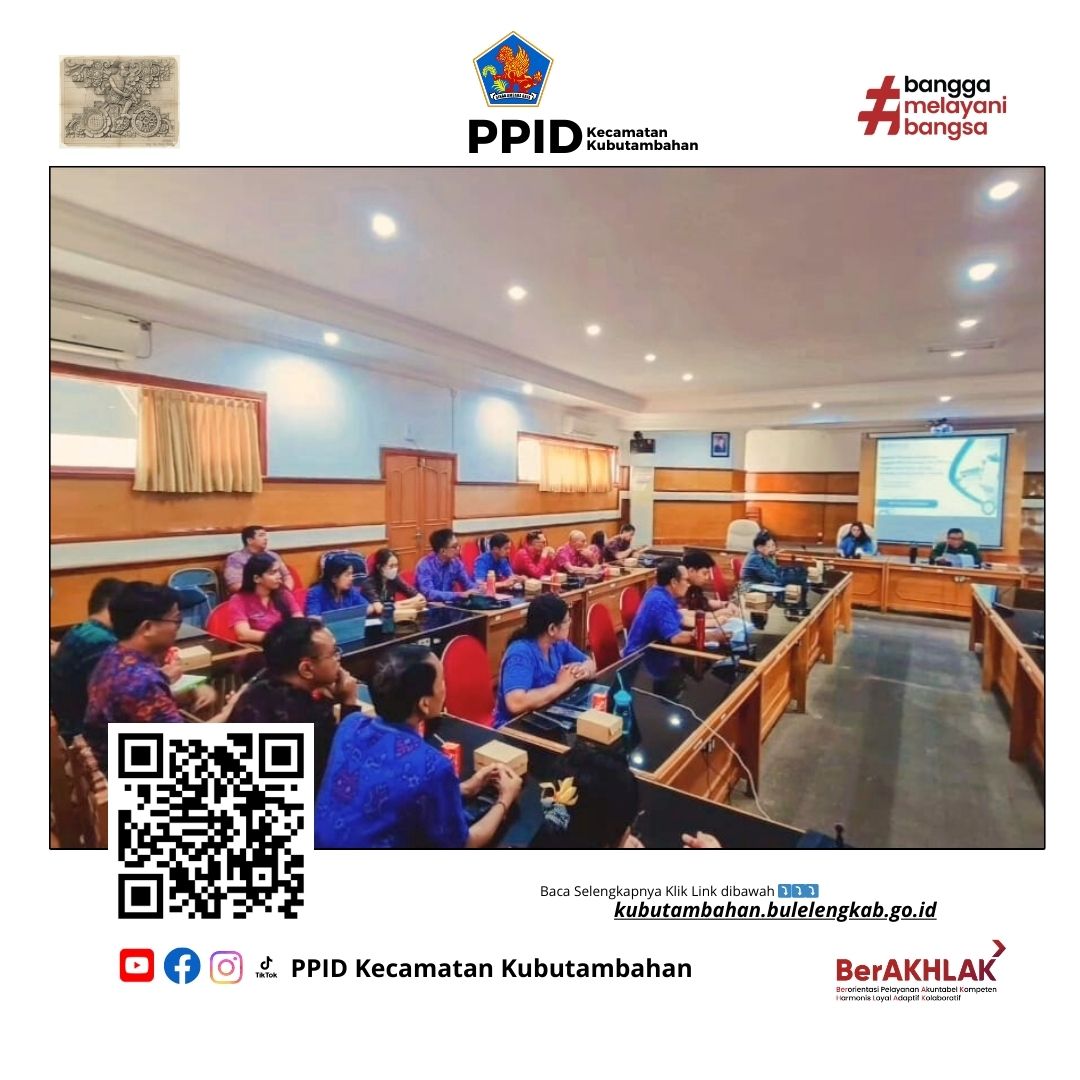 Buleleng — Staf Sub Bagian Umum & Keuangan Kecamatan Kubutambahan, Komang Ayu Sriani dan Ni Made Ollanda Cahayanisa, menghadiri Rapat Koordinasi Percepatan Penyelesaian Tunggakan Peserta Bukan Penerima Upah (PBPU) Alih Segmen PNS, PPPK, dan Perangkat Desa melalui dukungan Pemerintah Daerah Kabupaten Buleleng. Rapat ini dilaksanakan pada Selasa, 2 Desember 2025, bertempat di Ruang Rapat Unit VI Kantor Bupati Buleleng.