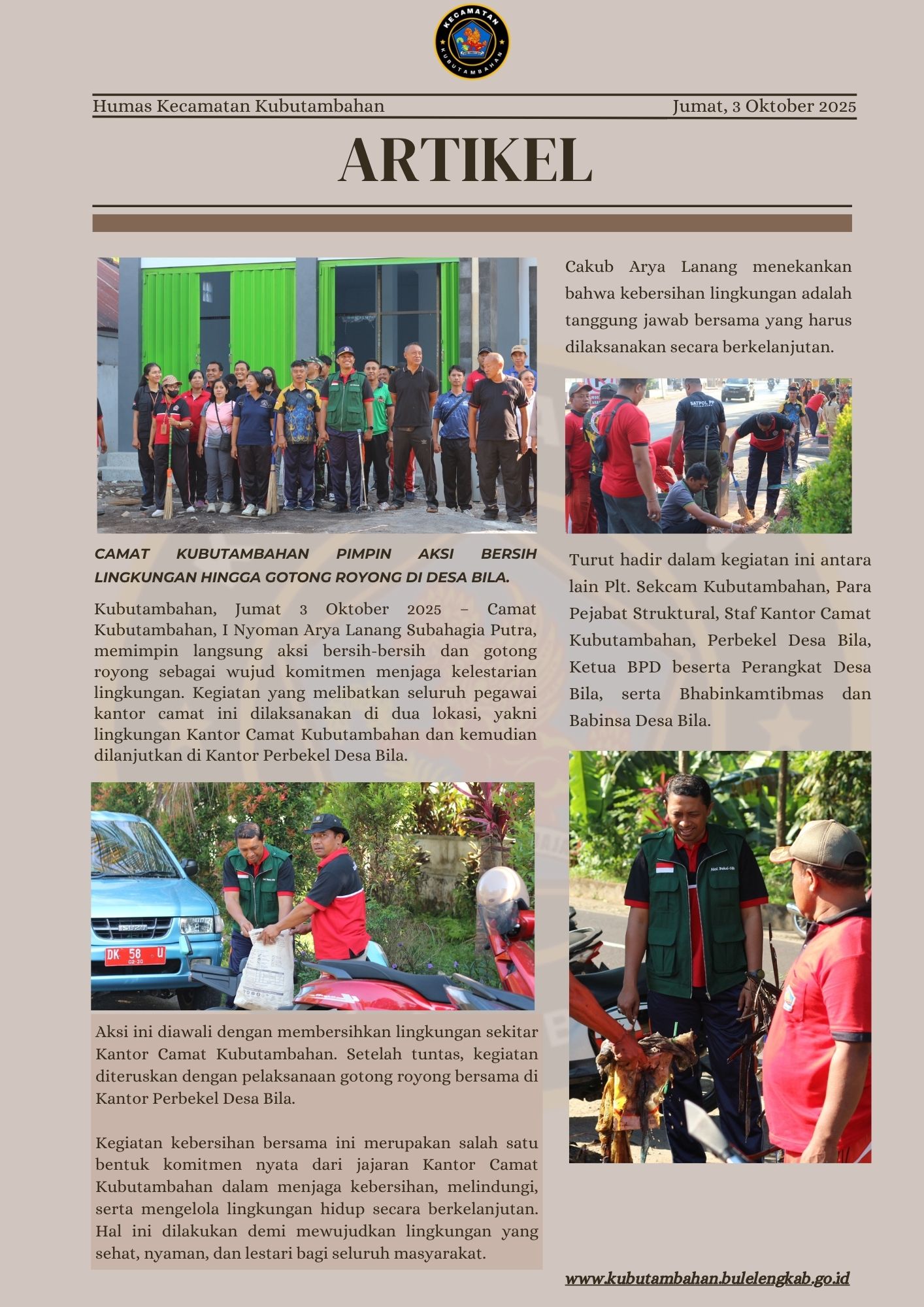 Camat Kubutambahan Pimpin Aksi Bersih Lingkungan Hingga Gotong Royong di Desa Bila.