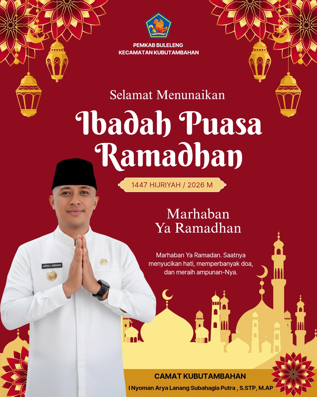 Pemerintah Kabupaten Buleleng Kecamatan Kubutambahan mengucapkan Selamat Menunaikan Ibadah Puasa 1447 H / 2026 M.